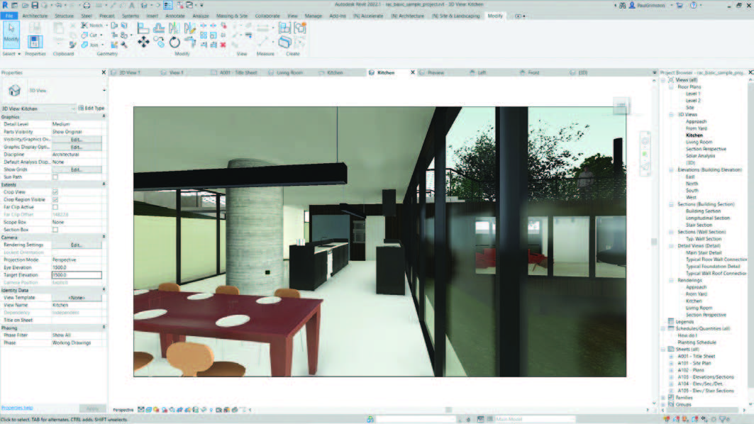 Yes, if I enable realistic shading and try to walk through the model using the Navigation Wheel then it will take a while to get going, but realistic walkthroughs aren’t really the reason for using Revit. If I needed to do that regularly then I would be looking at real-time visualisation tools like Enscape™ or Twinmotion®, either of which will do a much better job than Revit for those types of output.