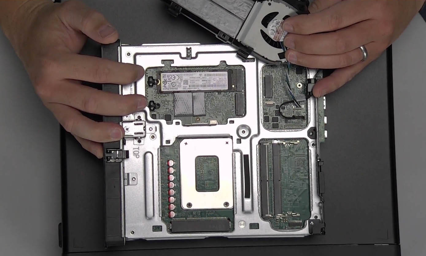 Elsewhere, the system supports up to 128 GB of DDR5 SoDIMM memory, which is double that of the slightly smaller HP Z2 Mini G9 and Precision 3460 Compact. This ‘industry first’ is enabled by having four SoDIMM slots (two on either side of the motherboard) so there are dual DIMMs per channel. According to Lenovo, it is the result of working very closely with Intel.