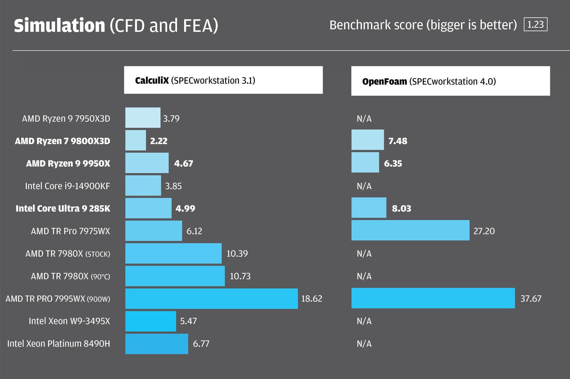 Of course, for those deeply invested in simulation, high-end workstation processors, such as AMD Ryzen Threadripper Pro and Intel Xeon offer a significant advantage, thanks to their higher core counts and superior memory bandwidth. For a deeper dive, check out last year’s workstation special report.