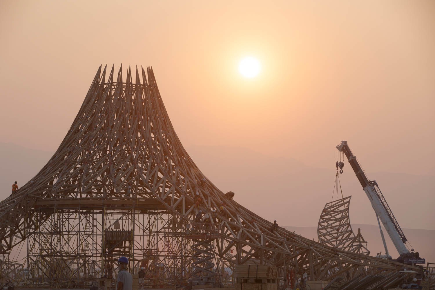 When the London-based architect and his team set out to finalize the project for construction, they took into account standard concerns such as safety, buildability, and cost. But the structure’s intended use added a novel twist: as the main temple at the annual Burning Man festival, Galaxia would be set aflame only seven days after it was erected.